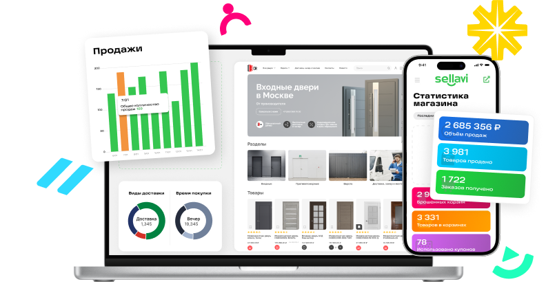 Всё необходимое для ведения онлайн-продаж, включая доставки, приём онлайн-платежей и аналитику